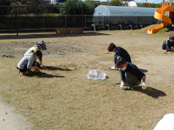 年に数回、保護者の方の協力を得て園内整備を行っています。